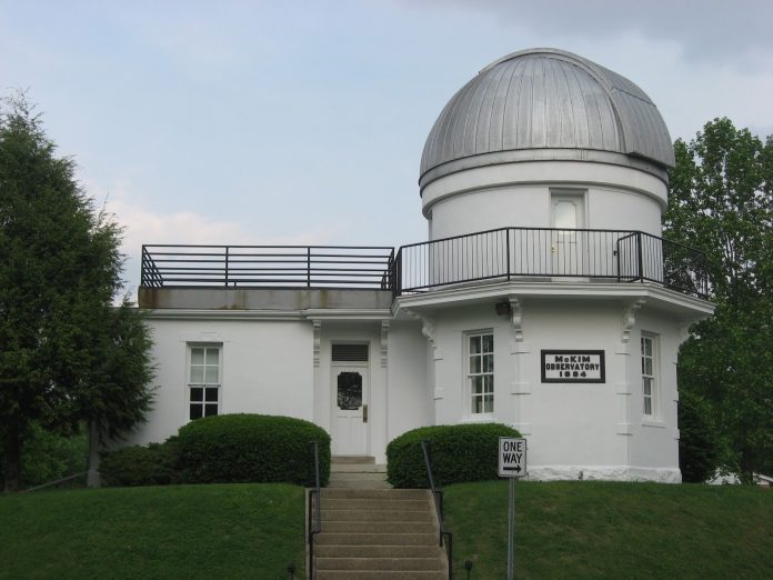 Aug. 26 marked the 140th anniversary of McKim Observatory’s First Light. An observatory’s “First Light” signifies when a newly constructed telescope is pointed to view the night sky for the first time. Built in 1884, the observatory has since been used by students taking astronomy classes or doing independent research projects, and is also open to the public during open houses. For its 140th anniversary, there will be a special First Light Festival, complete with presentations and extra opportunities for the public to visit.
