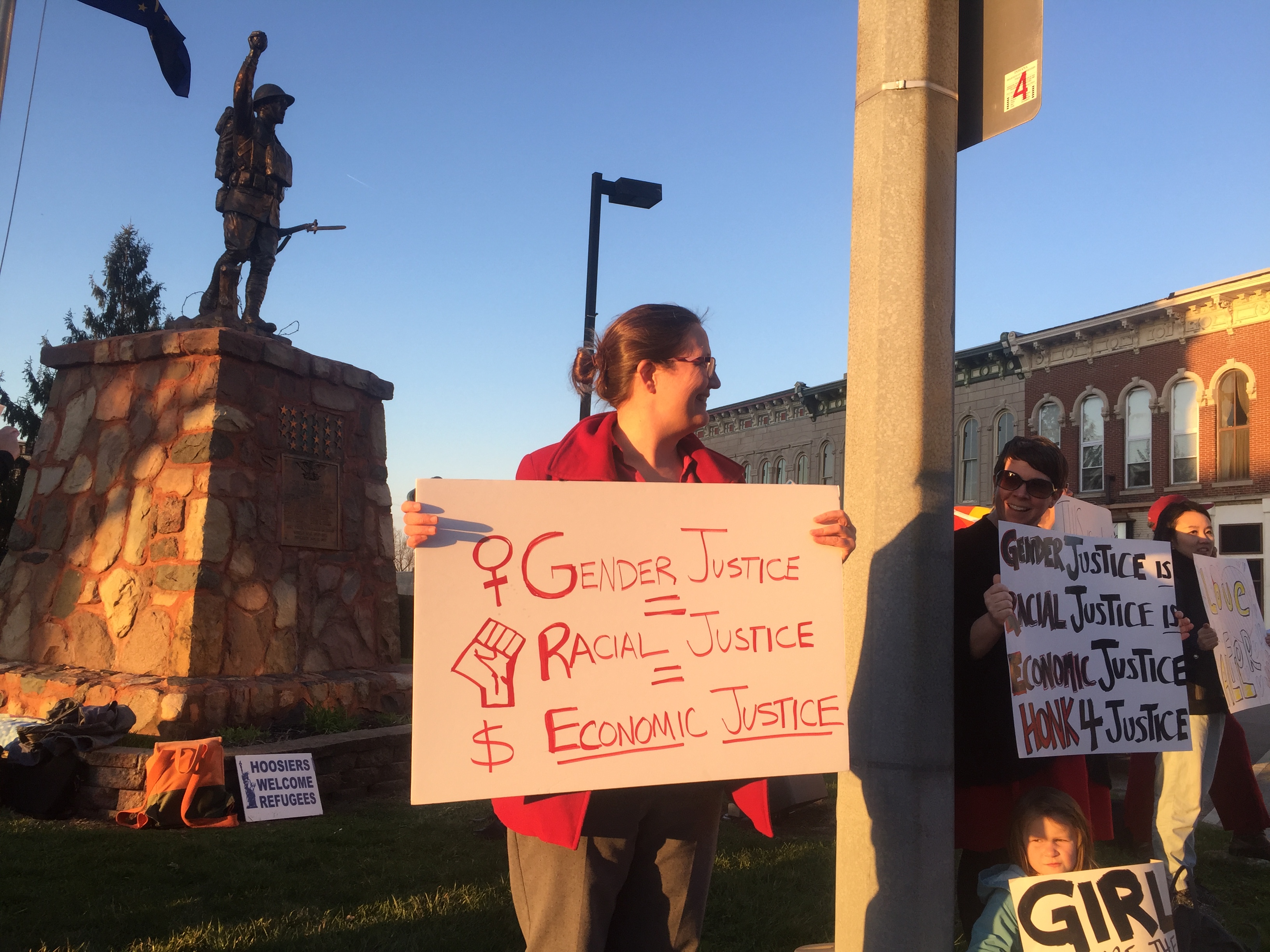 The demonstration was organized by Rise Up Greencastle, whose organizer is Dana Dudle, professor of biology at DePauw. Dudle described Rise Up Greencastle as a “loosely affiliated group of concerned people in Greencastle.”