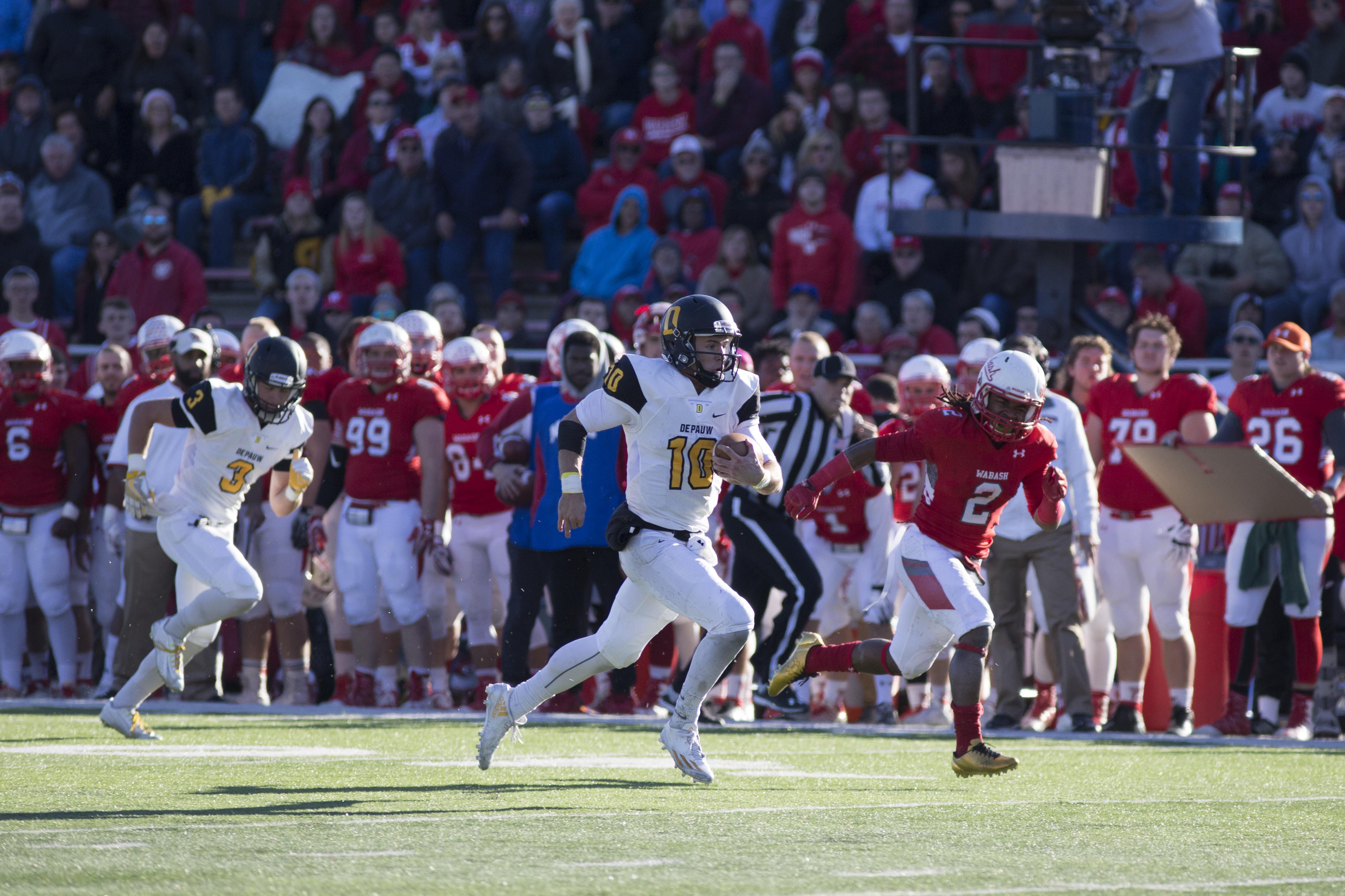 After driving down the field in a matter of three plays, Hunt passed right to his brother, sophomore wide receiver Andy Hunt, to put the Tigers ahead 37-34 and giving the ball back to Wabash with 32 seconds remaining in the game. Wabash was unable to answer in the time left and DePauw brought home the bell for the first time this decade.