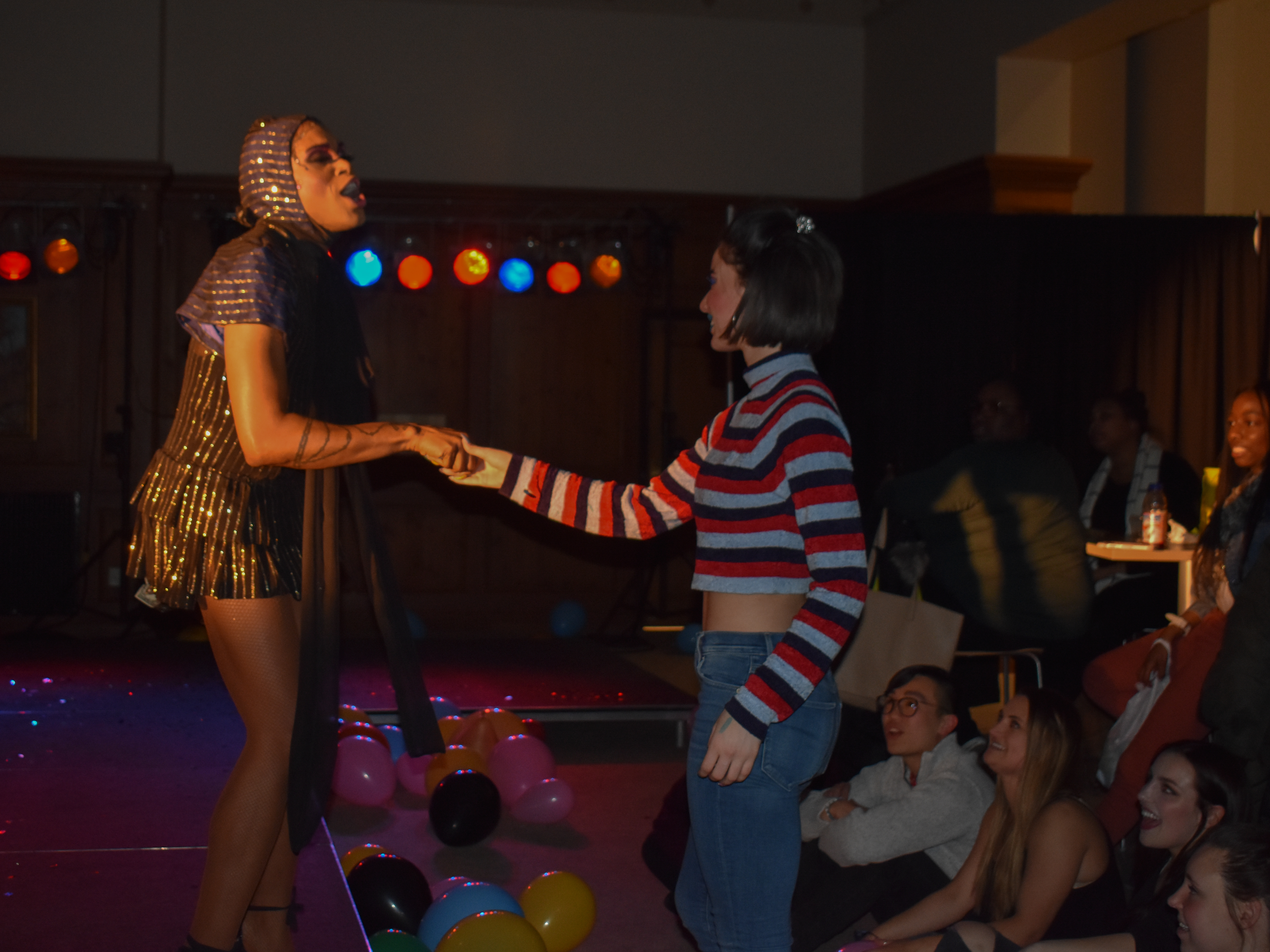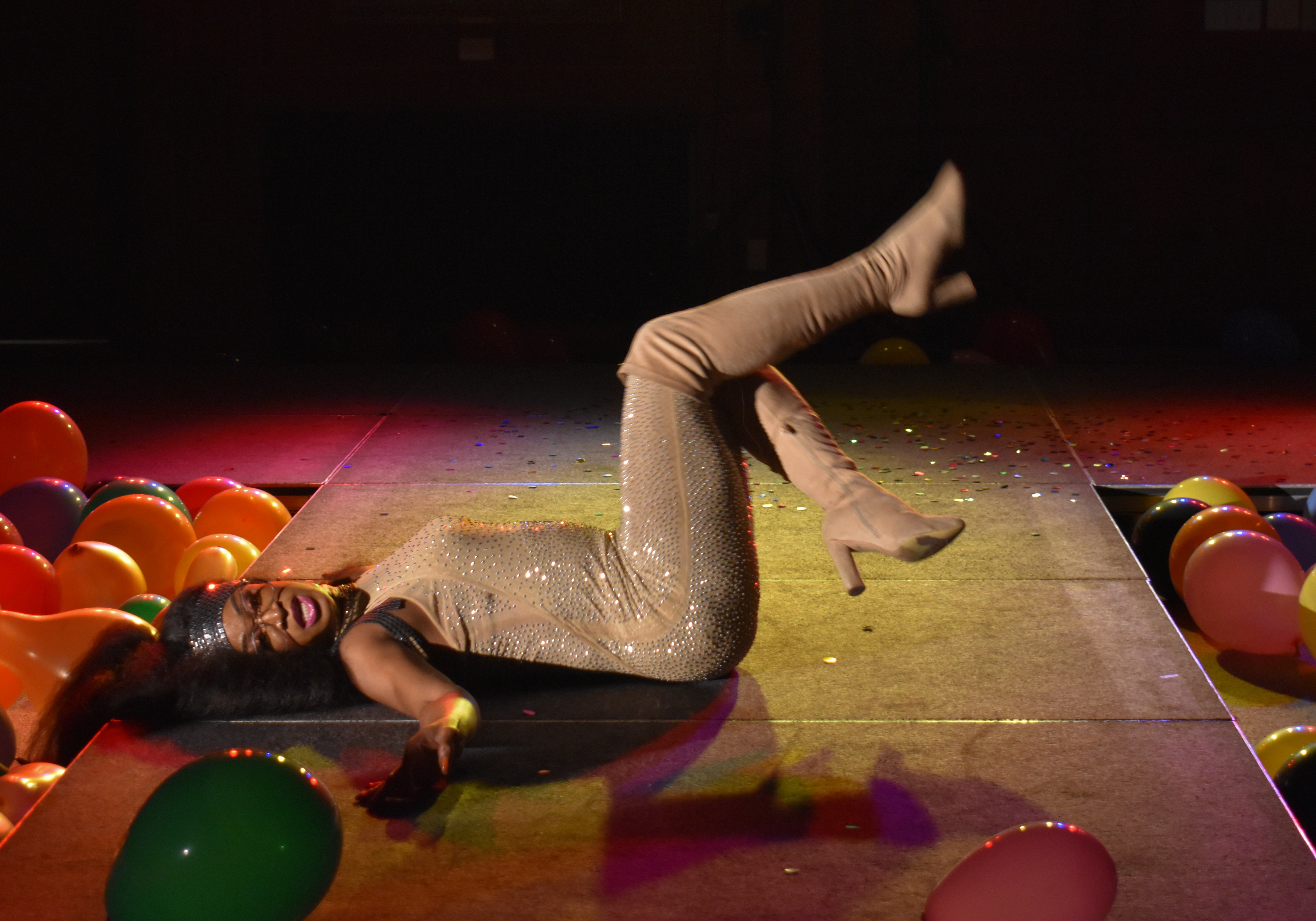 Drag Queen Dida Ritz on during DePauw’s annual Drag Show