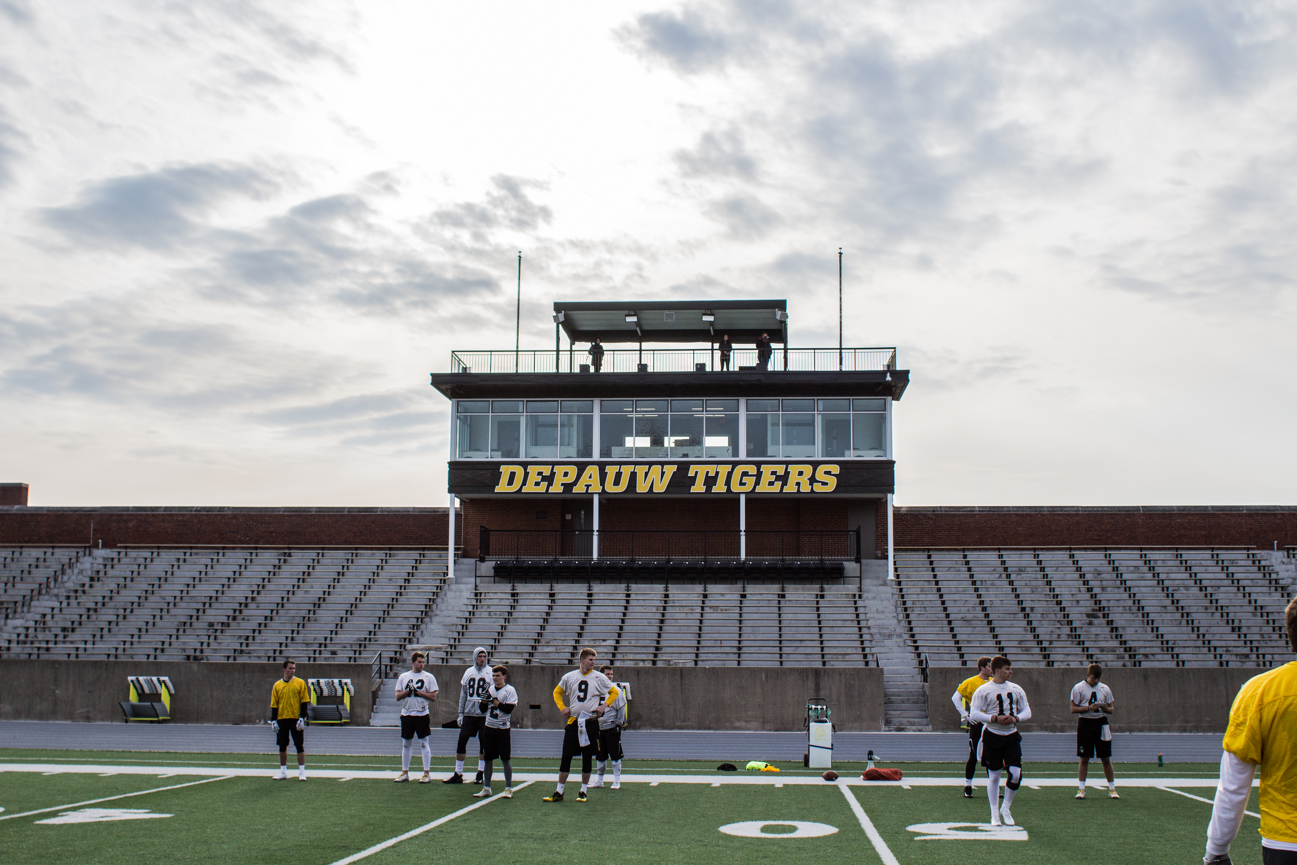 The DePauw football team is one week into Spring Ball which lasts throughout the month of April. The off-season training sessions consist of practices three times a week along with scheduled lifts.