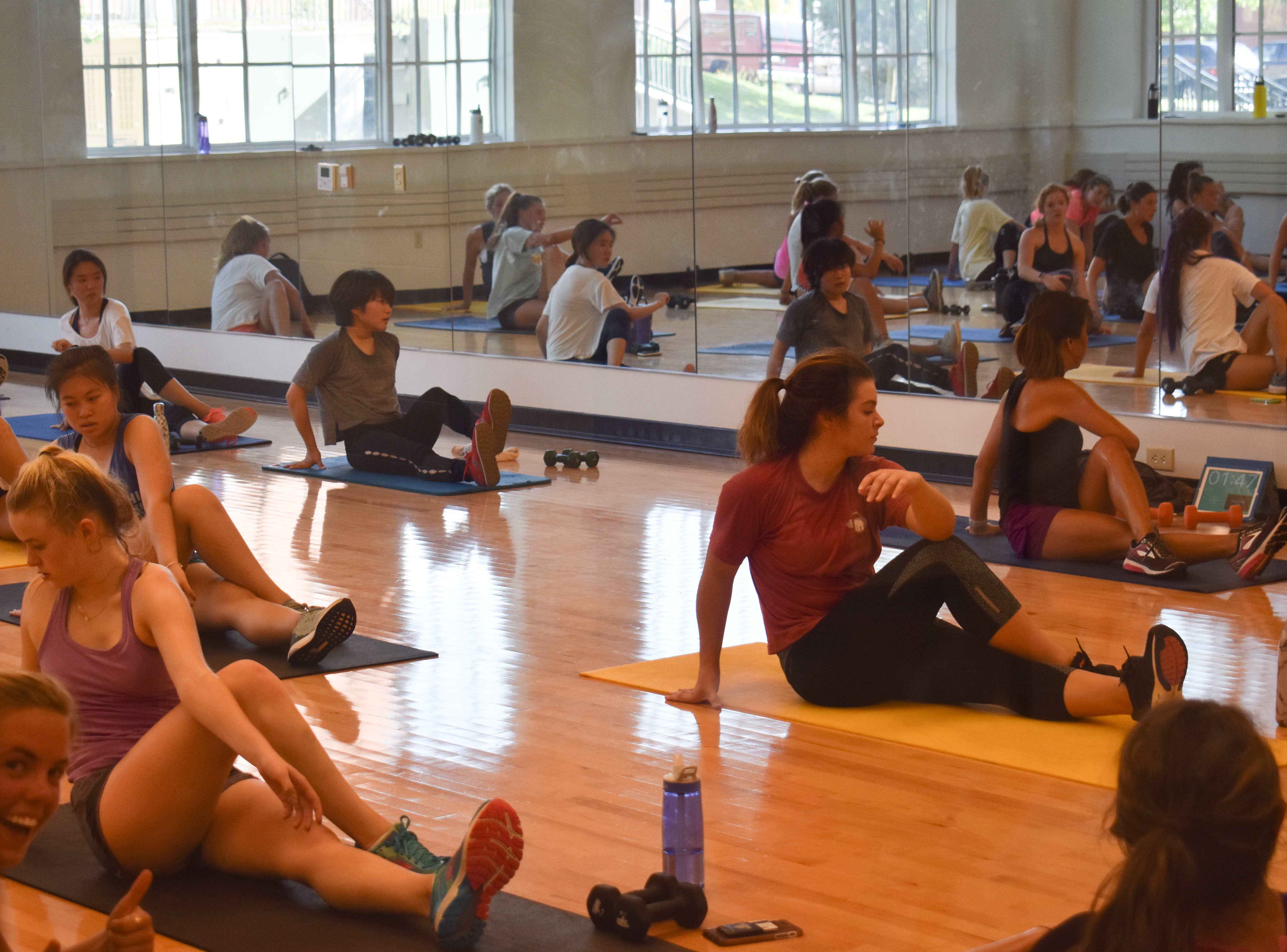 Students also appreciate the opportunity to socialize while also getting a workout. Senior Xueying Li joined this class last semester with her friends and loved it. “I like the group class because when there are a lot of other people who know me, it motivates me to keep up.” She likes the timing of the class as well because she can go workout right after her classes and have dinner immediately after that.