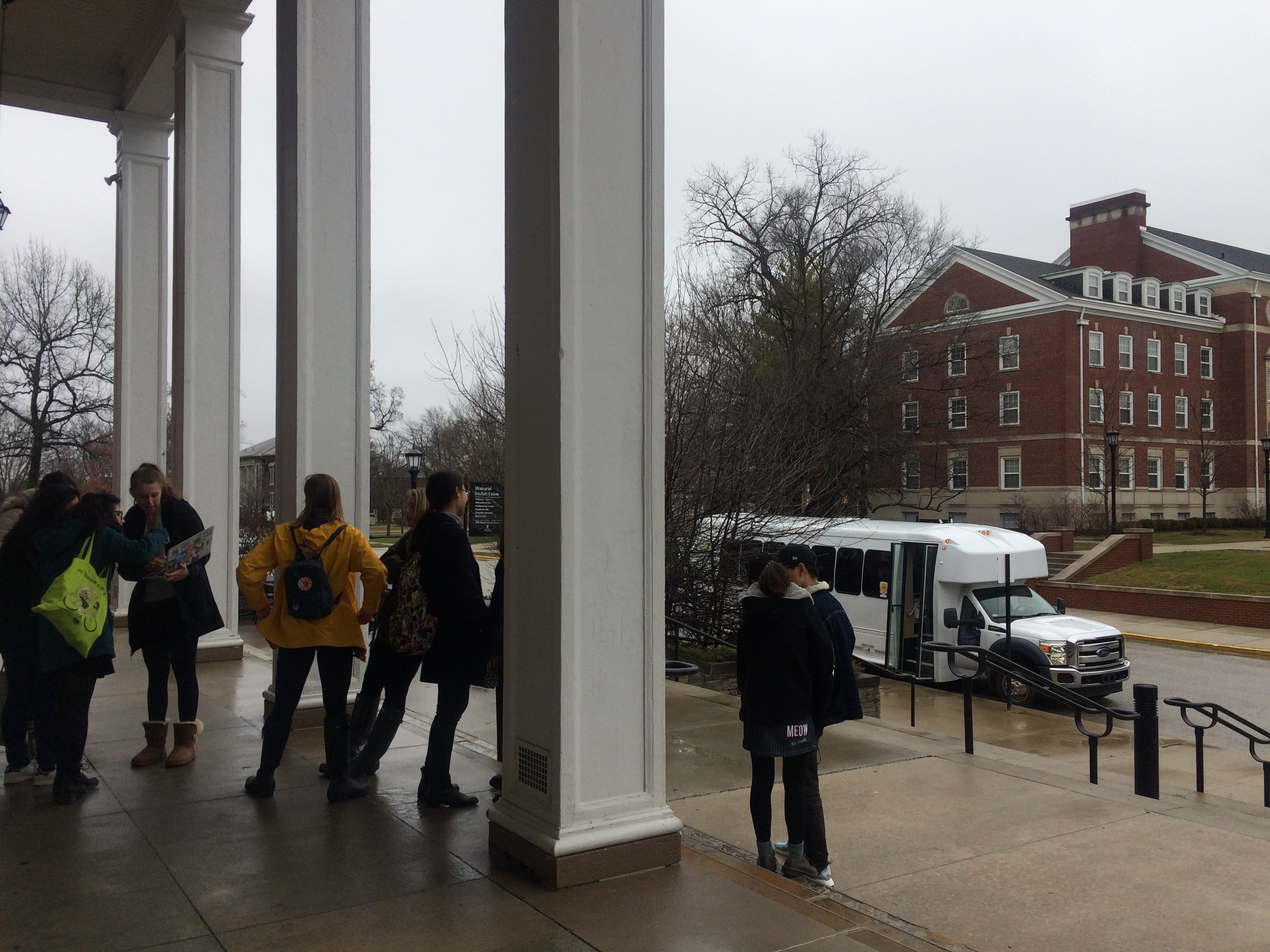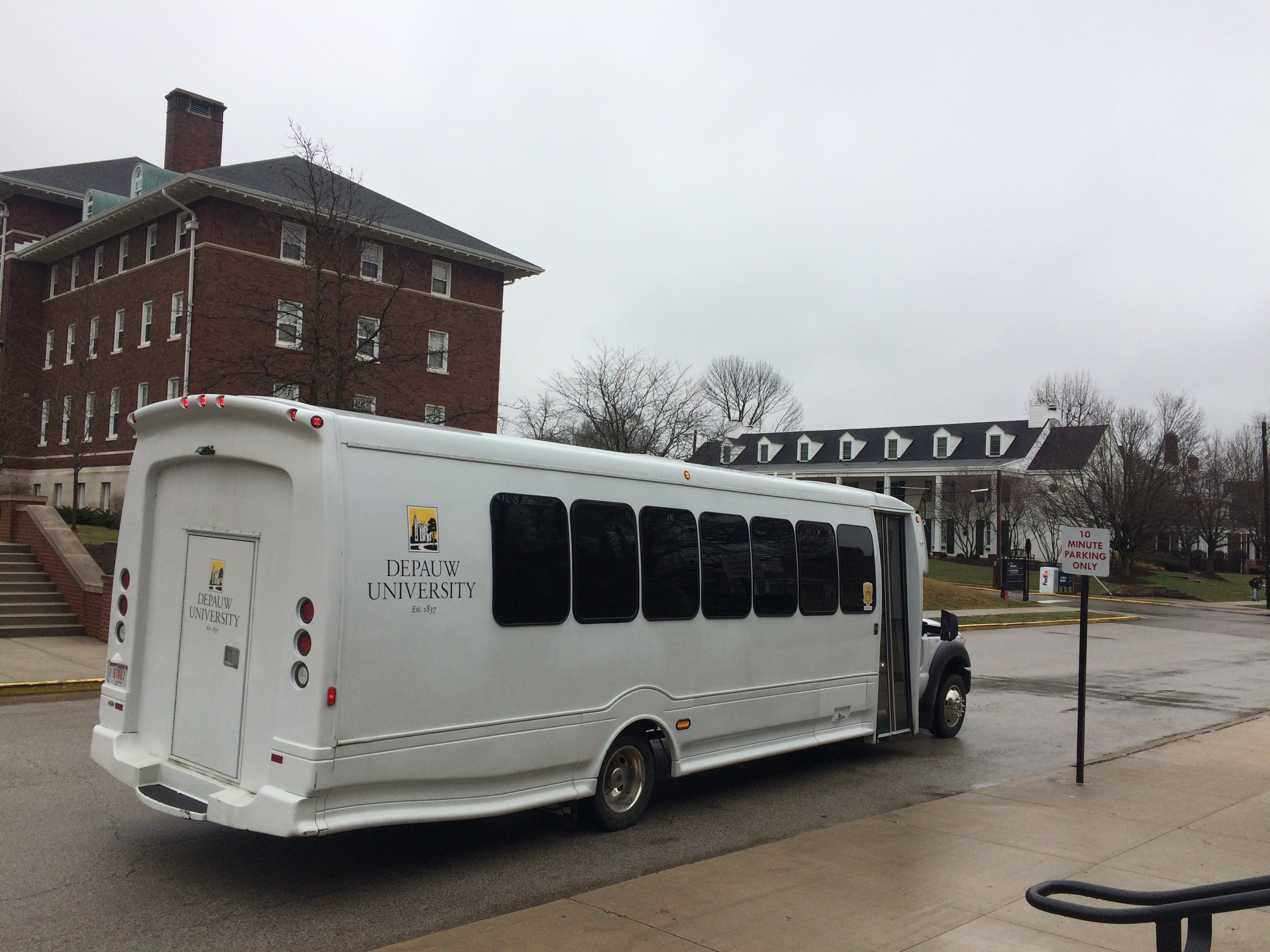 A white minibus with the DePauw University logo left the Union Building at noon Feb. 24 with 27 students. The bus arrived at the Convention Center in downtown Indianapolis and twelve hours later the shuttle returned to campus.