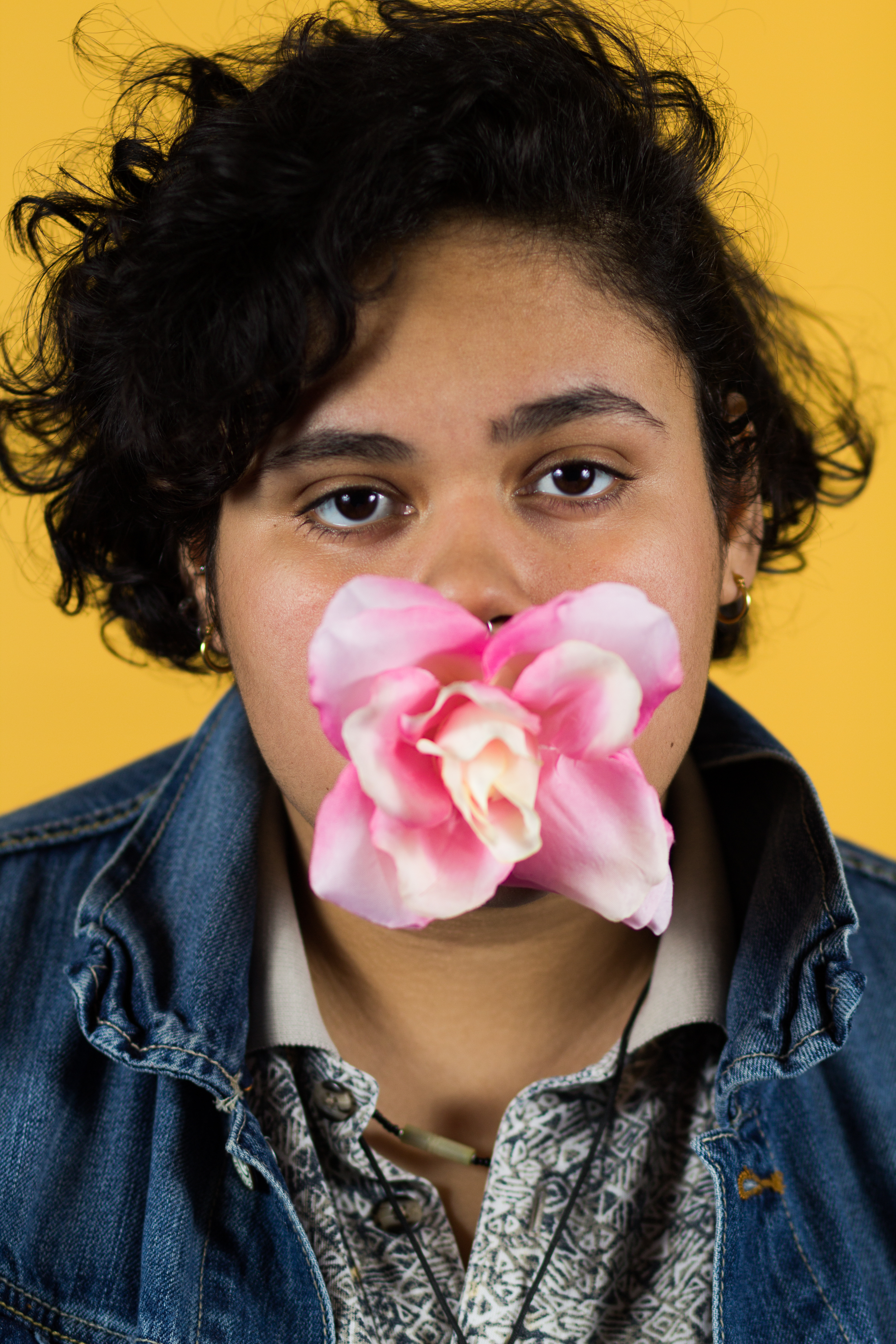 G: My sexual orientation and also my weight-- not that I’ve struggled with weight ‘cause I’m okay with how I am. But growing up, I always felt the need to cover up because I was fat or chubbier than other girls and that was coming from outside influences like family where it was like ‘if you look like this you can’t dress like that’; where people are like ‘fat girls can’t wear crop tops.’ I kind of internalized that. And also where I’m from, New York. Catcalling is a big thing. I never really felt safe when I dressed more fem. Actually have a poem called “On the Male Gaze,” where I talk about how much of my gender expression is due to the fact that I can’t be comfortable in my body without men tracking me or calling me on the streets, etcetera, etcetera. So that’s something I’ve really been grappling with. But when I identify myself to others, I say that I’m a masc presenting queer woman. ‘Cause not all queer women present masculine. Some are very feminine. For me though, I lean towards more of like a masculine presenting gender expression just because I feel more comfortable in it. But I’ve definitely been more fem in the past.