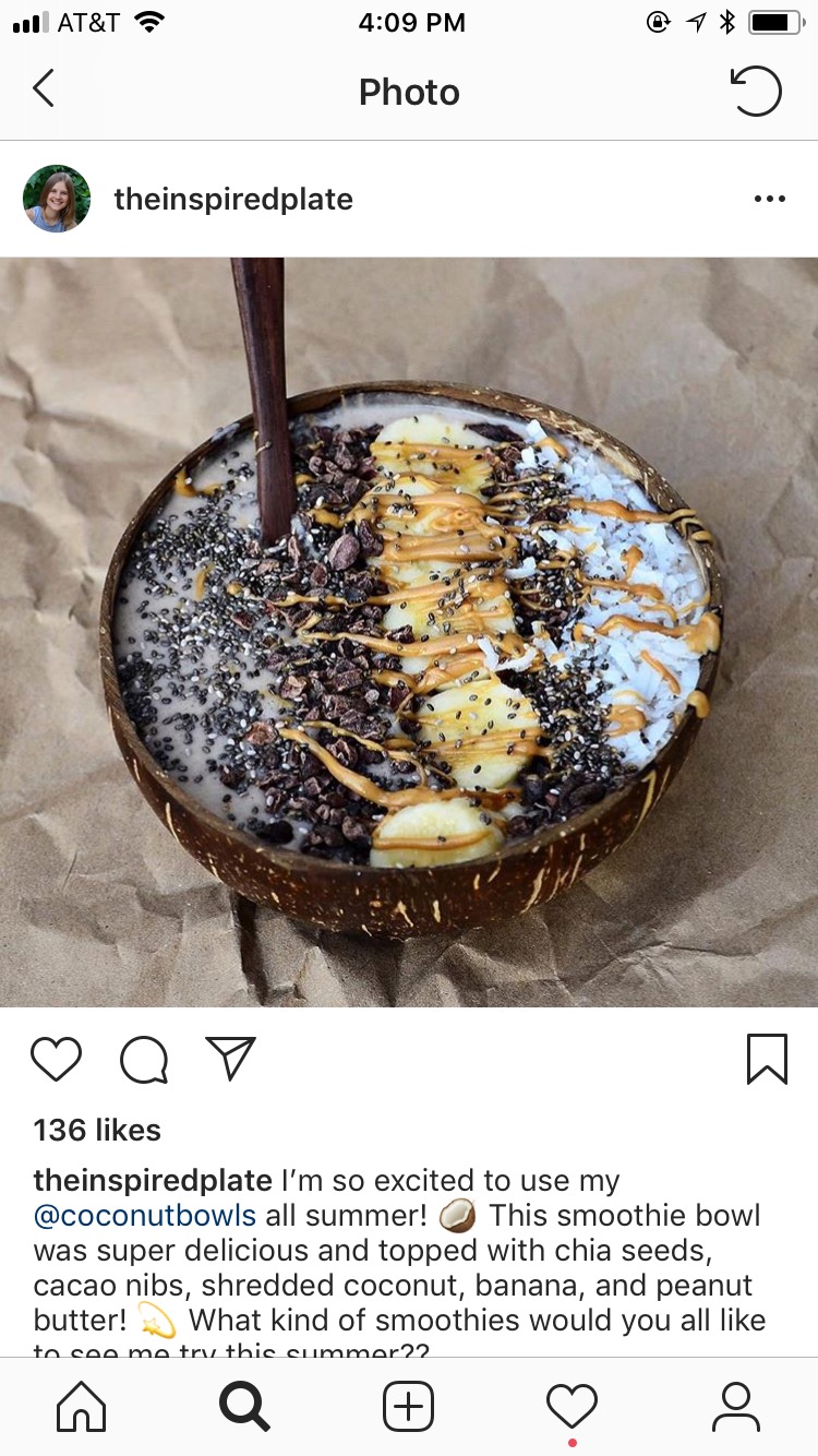 C: I do have one post, it was of a smoothie bowl, and I have these bowls that are made out of discarded coconuts. This company takes unwanted coconuts and makes these bowls, and I had tagged their page, called “The Coconut Bowls,” and they ended up re-posting it on their own page. So that post got a lot of likes from people who saw it through that page, so that’s probably my most liked post.
