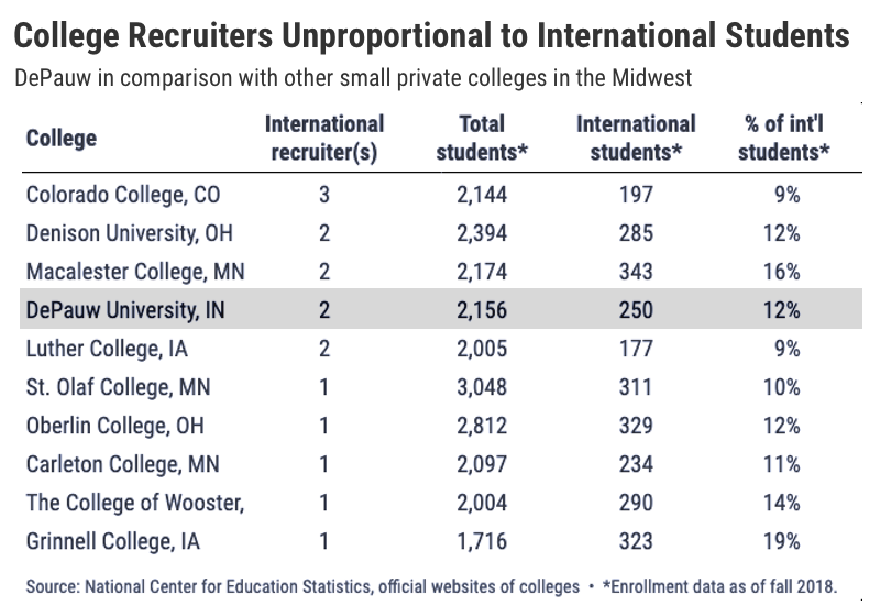 But the meticulous recruitment efforts requires more resources. As much as the lack of sufficient global marketing budgets like Jirari faces, understaffing has become a common issue among international admission offices at small private colleges including DePauw.