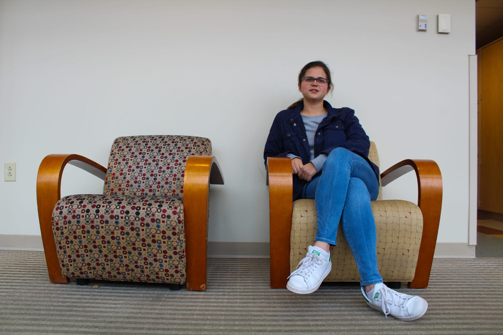 If you are ever walking in what is affectionately called Bum Alley in the Green Center for Contemporary Arts, you will most likely see senior Lindsey Welp sitting at one of the tables there.