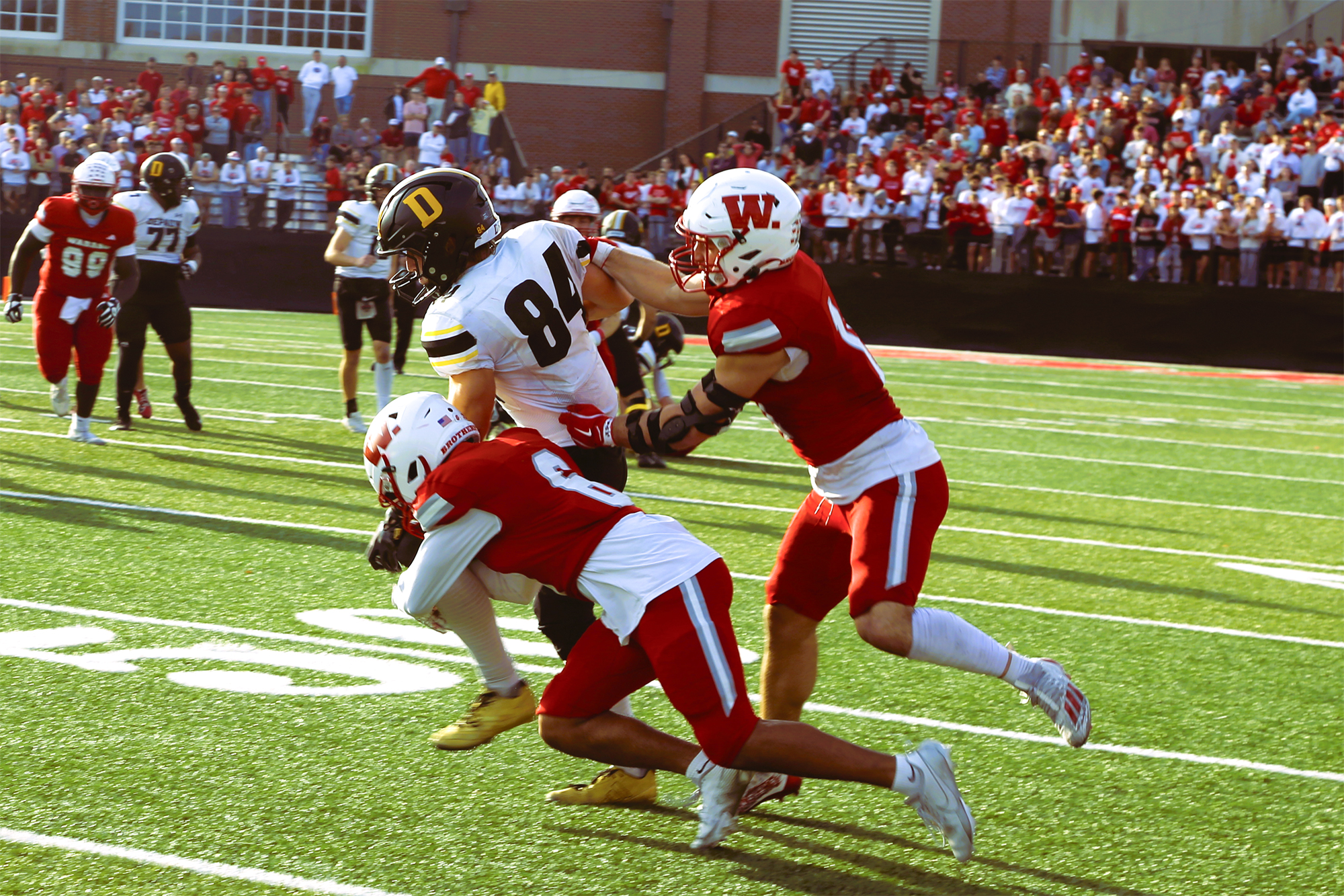 As the fourth quarter came underway, the two teams exchanged a series of punts until eventually the Tigers started at their own 48-yard line. In the redzone, Ballentine ‘28 threw a 14-yard touchdown pass to Ballentine ‘26 to pad the score to 41-14. On Wabash’s final drive, running back Xavier Tyler found himself in the endzone, bringing it up to 41-21.