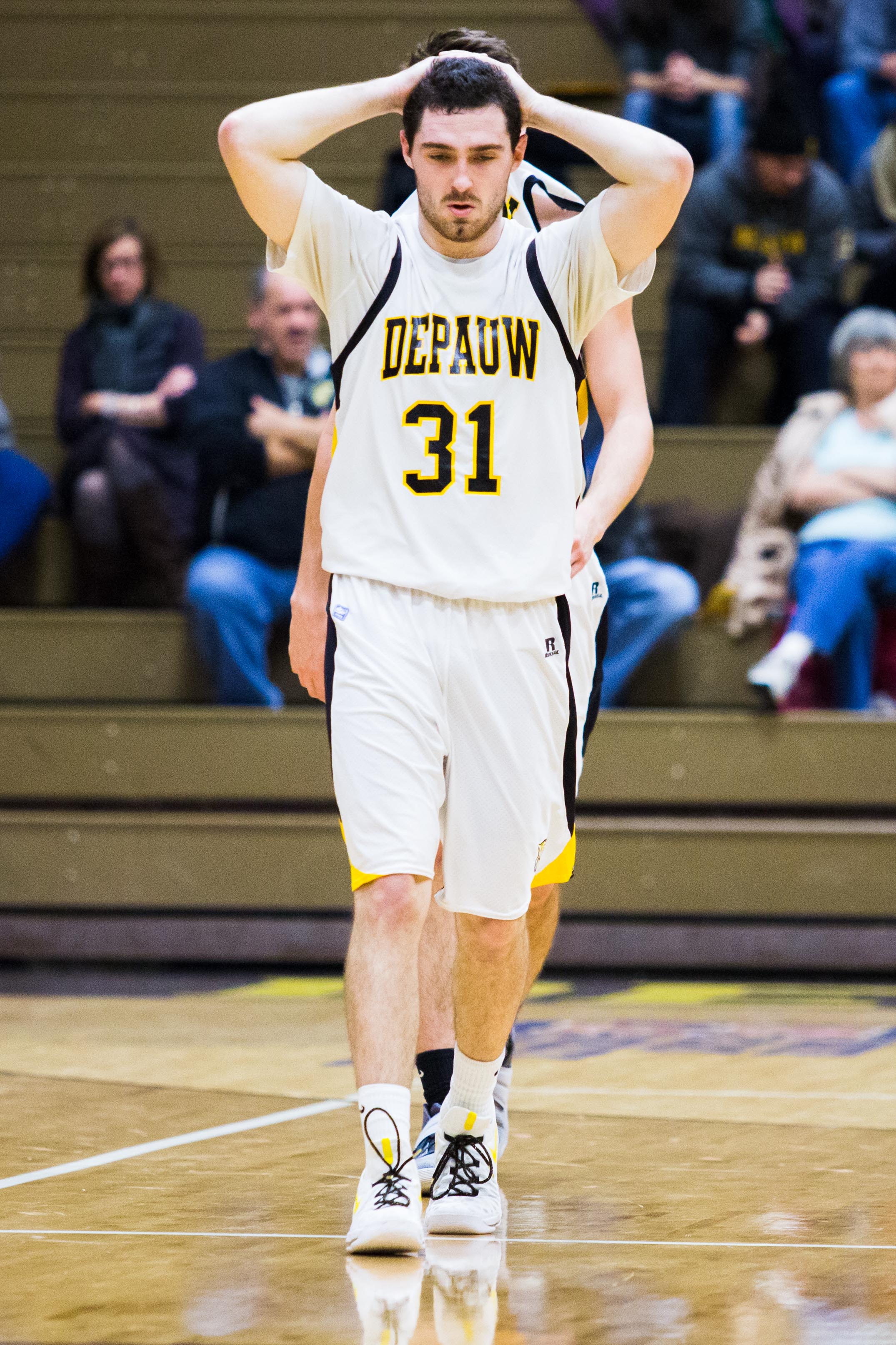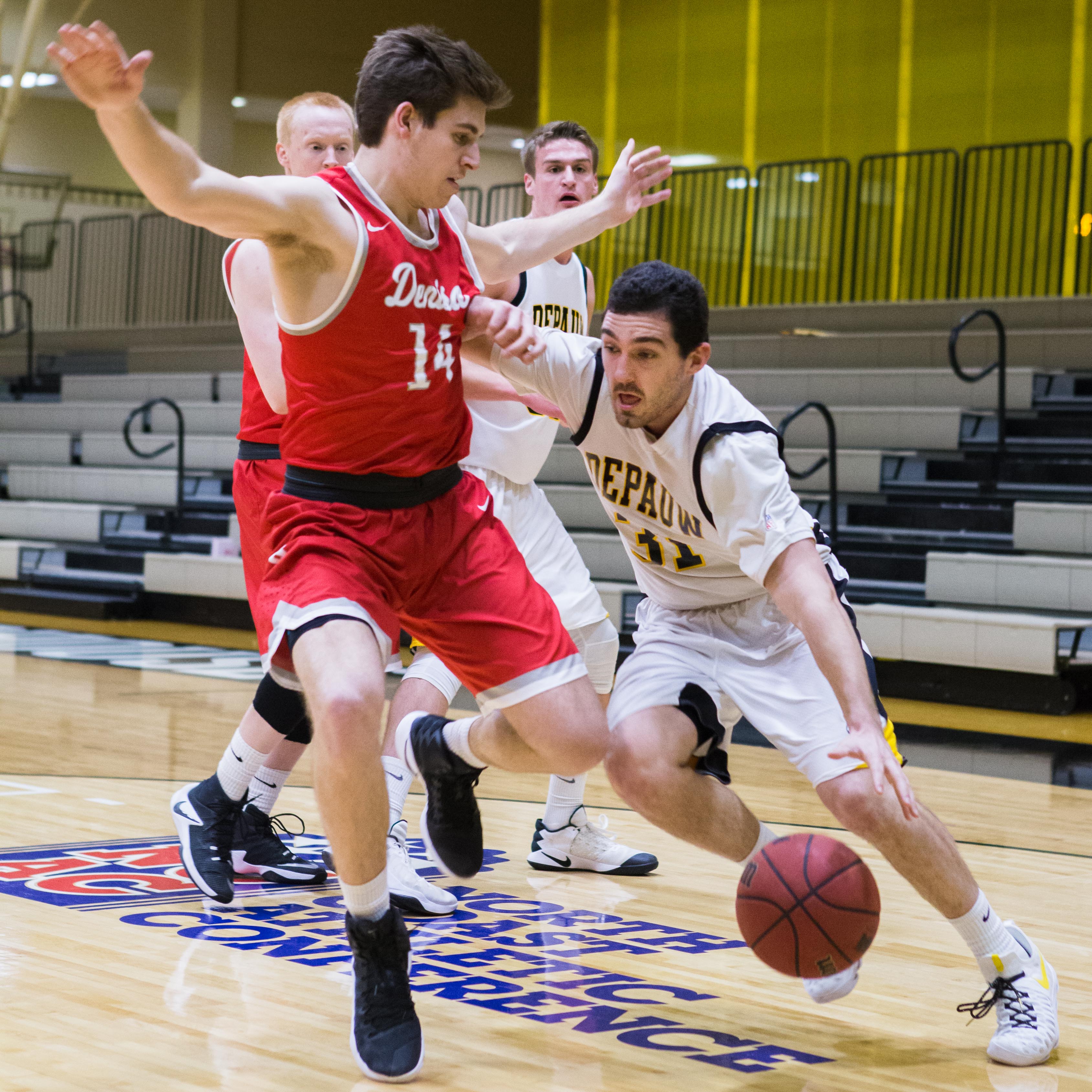 The team began the week against the best team in the NCAC with 23rd ranked Denison University at home on Wednesday. In front of a larger than average crowd, the Tigers fell to an early 14-5 deficit. With a nice surge from the second-unit triggered by junior James Clarke and sophomore Andrew Kus, the team was able to quickly cut Denison’s lead to 20-17 with 7:40 remaining. The Tigers kept the momentum rolling until Lattner beat the buzzer with a three-pointer from the wing to give Depauw a 34-32 lead at halftime.
